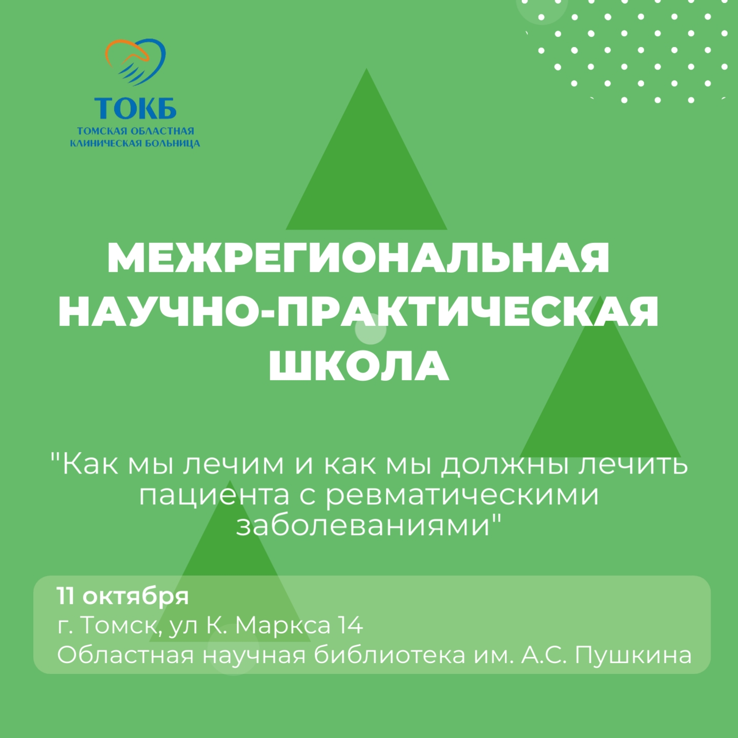 10.10.2025В субботу, 11 октября, в Областной научной библиотеке им. А.С. Пушкина (по адресу ул. К. Маркса 14) пройдет Межрегиональная научно-практическая школа «Как мы лечим и как мы должны лечить пациента с ревматическими заболеваниями».